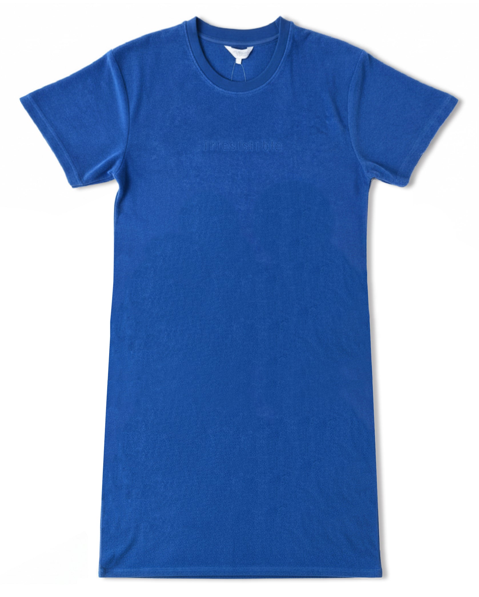 Comfortabel dames nachthemd van Irresistible gemaakt van zachte badstof in een blend van 80% gekamd katoen en 20% polyester. Ontworpen met korte mouwen, ronde hals met ribboord en reikt tot boven de knie. De rekbare kwaliteit zorgt voor perfecte pasvorm en bewegingsvrijheid, terwijl de geborduurde 'Irresistible' tekst op de borst een stijlvol detail toevoegt.