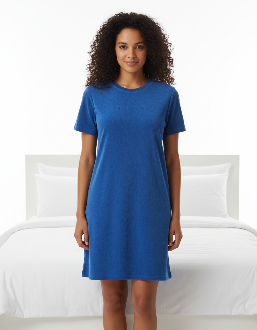 Irresistible Dames Nachthemd - Badstof - korte Mouwen - Blauw