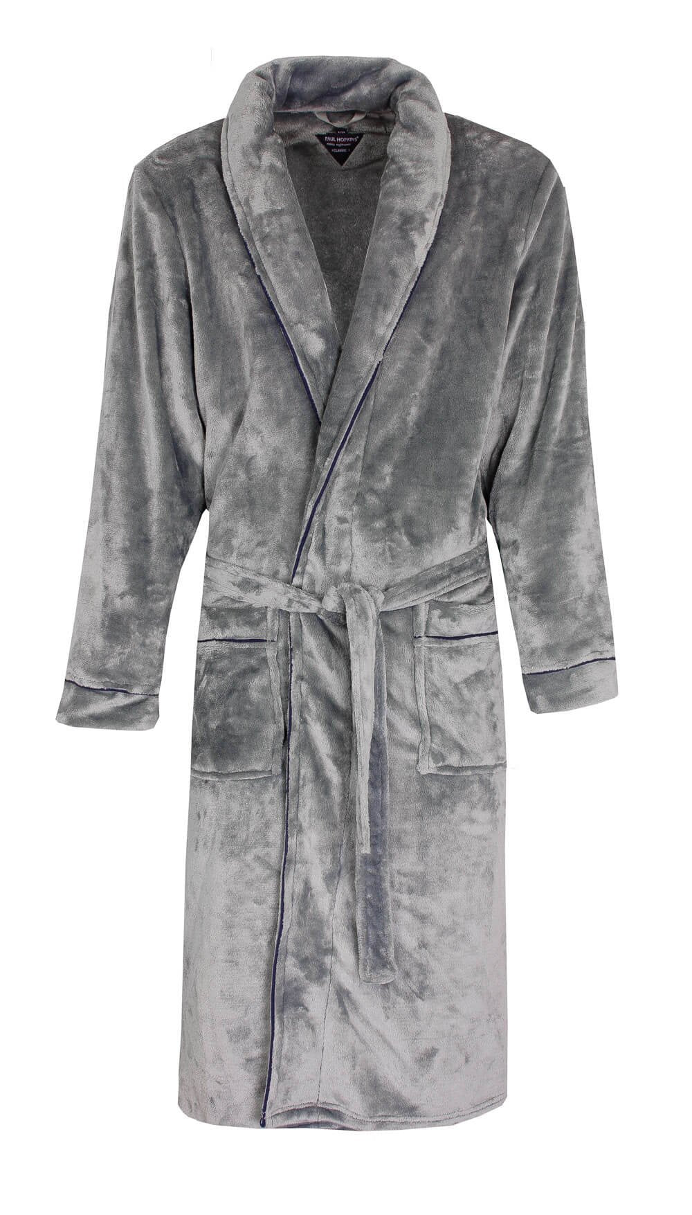 Ontdek ultiem comfort met de Paul Hopkins Heren Badjas in licht grijs. Gemaakt van 100% Polyester Coral Fleece, biedt deze luxueuze kamerjas ongeëvenaarde zachtheid en warmte. Met een royale sjaalkraag, ceintuur voor een perfecte pasvorm, en stijlvolle blauwe biezen, combineert deze badjas functionaliteit met elegantie voor ontspannen momenten thuis.