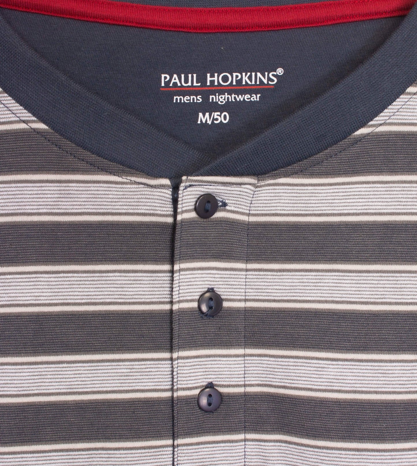 Deze Paul Hopkins heren pyjama biedt het ultieme slaapcomfort met stijl. Gemaakt van 100% gekamde katoen, combineert de set een gestreepte top met lange mouwen en een uni donkerblauwe broek. De shaped fit zorgt voor een comfortabele pasvorm, terwijl details zoals de polo sluiting, geborduurd logo en elastische boorden voor extra comfort en een verzorgde uitstraling zorgen.
