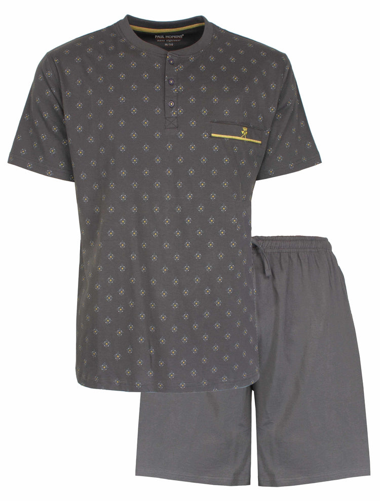 Paul Hopkins Heren Shortama - Pyjama Set - Polo Sluiting - Grijs