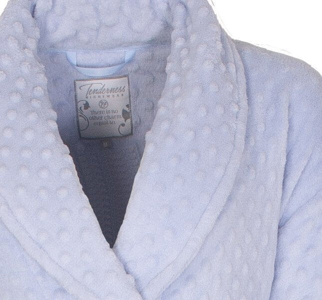 Tenderness Dames Badjas - Fleece - Reliëf bolletjes - Blauw